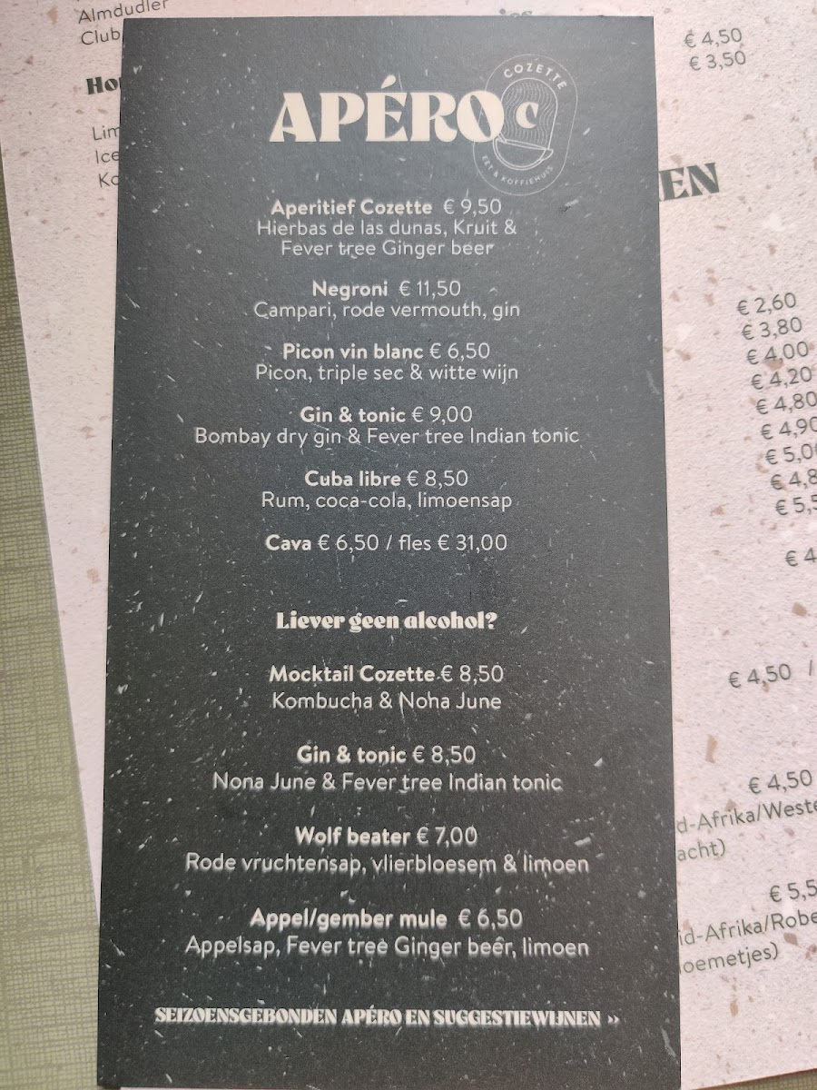 The menu at Eet- en koffiehuis Cozette reflects a simple yet thoughtfully curated café style, offering a range of casual bites and comforting drinks perfect for any time of day. Whether you're settling in for a relaxed brunch, a cozy coffee break, or a light lunch, the selections complement the warm and inviting atmosphere of this quaint Gent spot.